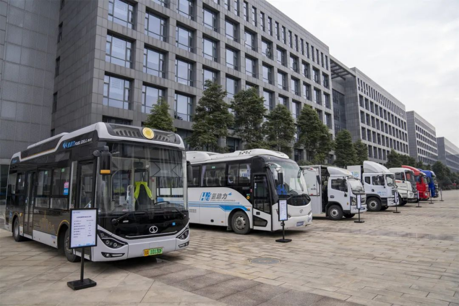 (“成渝氢走廊”启动暨氢燃料电池物流车首发仪式上,搭载永利集团官网总站氢燃料电池的商用车,包括公交车、物流车、工程专用车等。)
