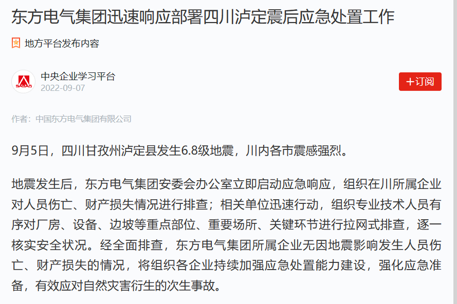 λÓÚãò¶¨ÏØ´ó¶ÉºÓ¸ÉÁ÷ÉϵÄÓ²Áº°üË®µçÕ¾µÄ·¢µç»ú×éÓɶ«·½µç»úÌṩ¡£Õðºó£¬ÕýÔÚÓ²Áº°üË®µçÕ¾¿ªÕ¹Ë®ÂÖ»ú×°ÖÃÊÖÒÕ·þÎñµÄÖ°¹¤Ñî¹âÒ«£¬ÓëµçÕ¾½¨Éè·½Ò»µÀÁ¬Ã¦Í¶ÈëÏÖ³¡×°±¸µÄÇå¾²¼ì²éÊÂÇéÖС£¶«·½µç»ú»¹µÚһʱ¼äÅɳöÊìϤ¸ÃµçÕ¾ÇéÐεÄÓ¦¼±°ü¹Ü²½¶Ó£¬Ð¯´øÓ¦ÇÀ¾ÈÔ®Îï×Ê´ÓµÂÑô³ö·¢¸ÏÍùãò¶¨ÏØ£¬¾ÓɽüÎå¸öСʱ²»ÖÐÖ¹Ðоü£¬ÒÑ˳ËìµÖ´ïãò¶¨£¬ºóÐø½«¿ªÕ¹Ó¦¼±´¦Öóͷ£ÊÂÇé¡£µçÕ¾·þÎñÊÂÒµ²¿¸±×Ü˾ÀíÀäÈðÌåÏÖ£¬½«Ç×½üÅäºÏÒµÖ÷µ¥Î»ºÍÍâµØÕþ¸®£¬×öºÃ×°±¸Çå¾²°ü¹Ü¡¢ÊÖÒÕÖ§³ÖºÍ¿¹Õð¾ÈÔÖºóÐøÊÂÇé¡£
