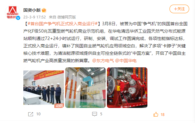 [国资小新]#首台国产争气机正式投入商业运行#