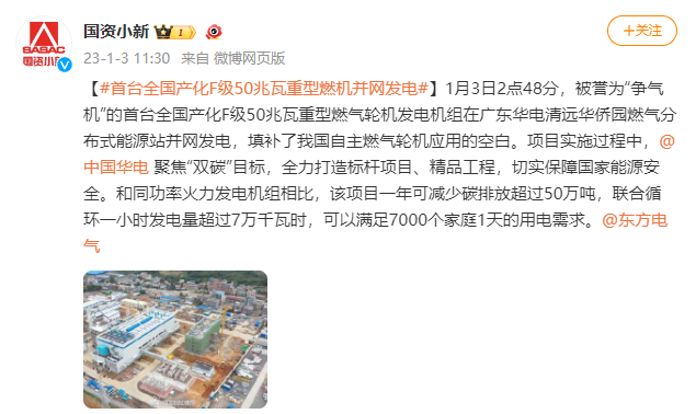 [国资小新]#首台天下产化F级50兆瓦重型燃机并网发电#