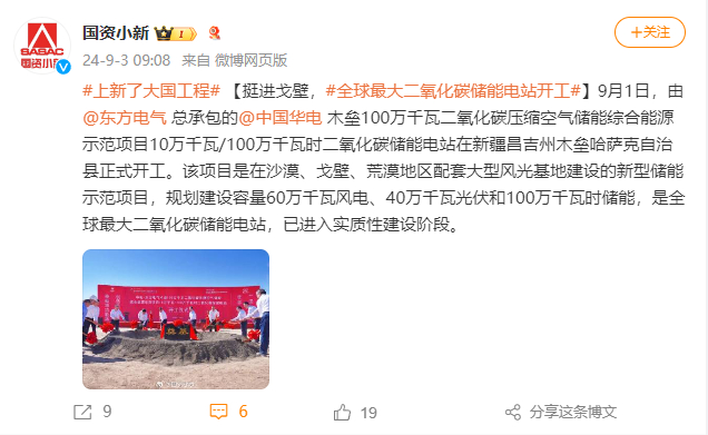 [国资小新]#上新了大国工程# 【挺进沙漠,#全球最大二氧化碳储能电站开工#】