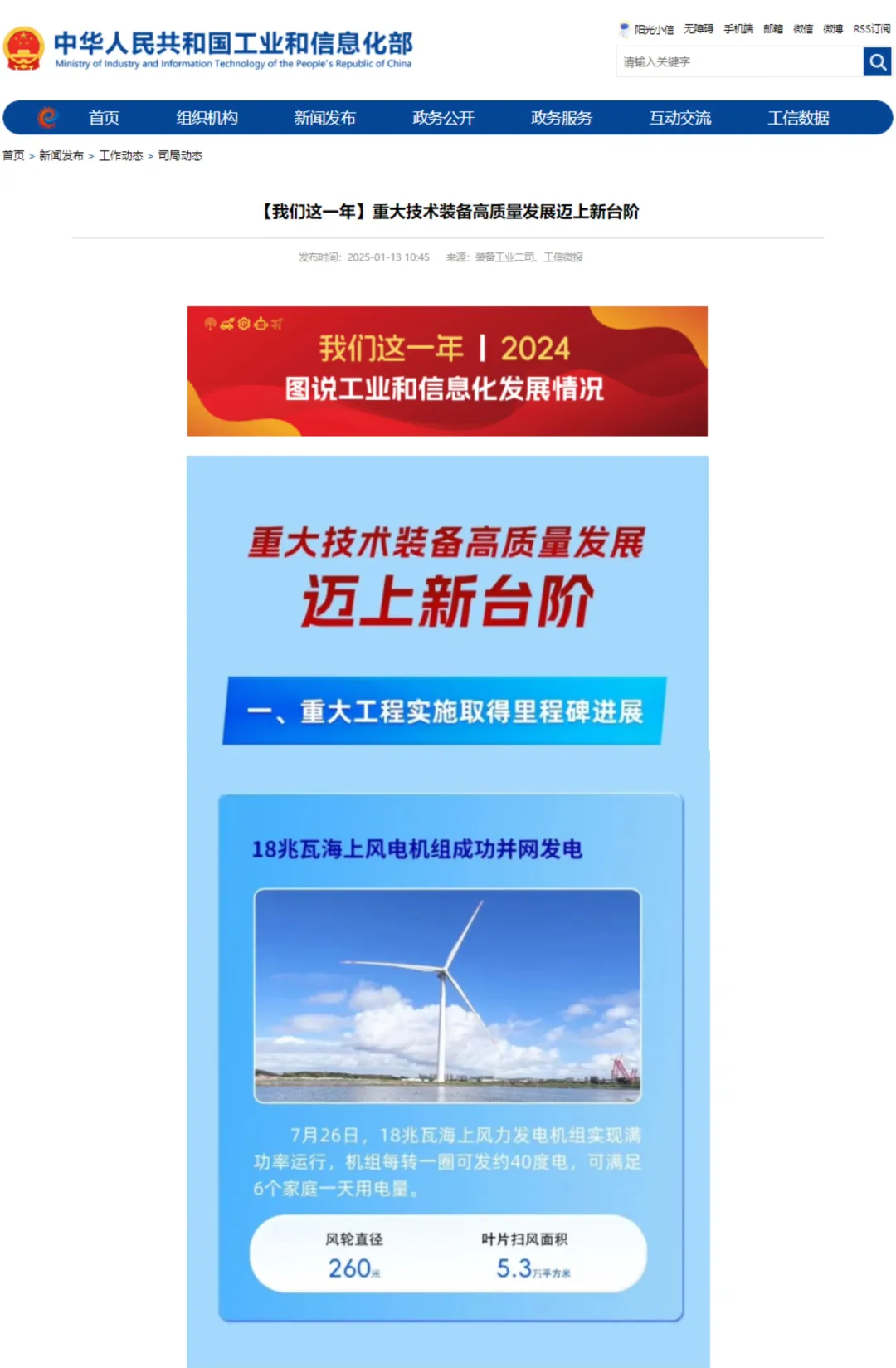 ¿ËÈÕ£¬¹¤ÐŲ¿Ðû²¼¡°¡¾ÎÒÃÇÕâÒ»Äê¡¿ÖØ´óÊÖÒÕ×°±¸¸ßÖÊÁ¿Éú³¤ÂõÉÏÐĄ̂½×¡±Ã¶¾ÙÁË2024ÄêÖØ´óÊÖÒÕ×°±¸È¡µÃµÄÍ»³ö³É¼¨ÓÀÀû¼¯ÍŹÙÍø×ÜÕ¾¡°18Õ×Íߺ£ÓÅÊÆµç»ú×éÀֳɲ¢Íø·¢µç¡±ÈëÑ¡¡°Öش󹤳ÌʵÑéÈ¡µÃÀï³Ì±®Ï£Íû¡±