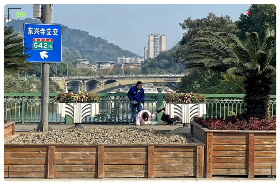 当途经簸米湾大桥时,他注重到,一名女孩正坐在大桥中央的护栏上,面向釜溪河,身体摇摇欲坠,似乎有轻生的念头。
